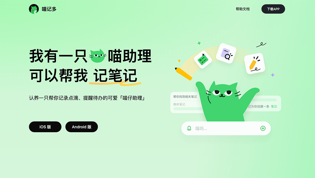 - 喵记多iOS版App下载地址: https://apps.apple.com/cn/app/喵记多-自带助理的ai笔记/id6739209473