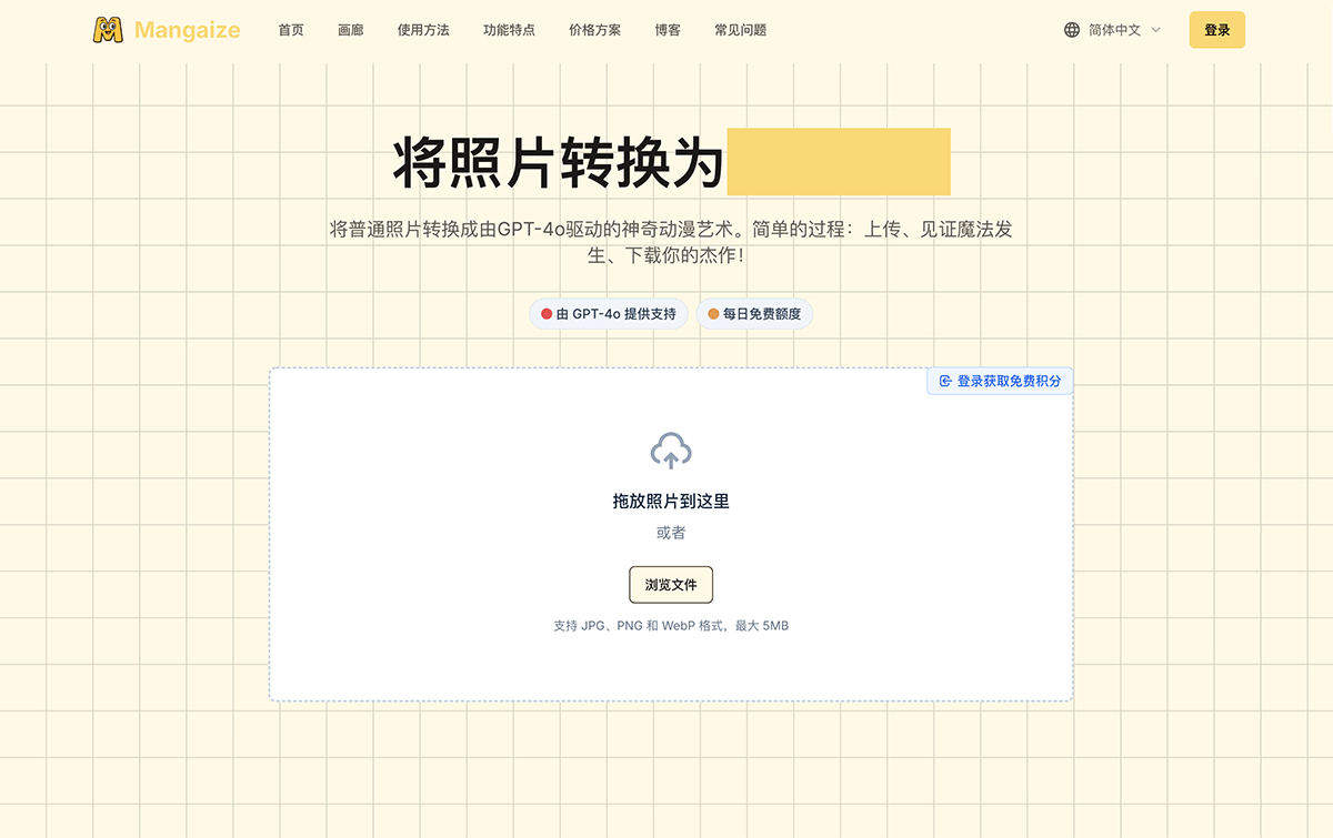 Mangaize每天提供3个积分的免费额度,支持使用Google、Github账号直接登录使用。